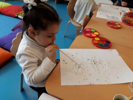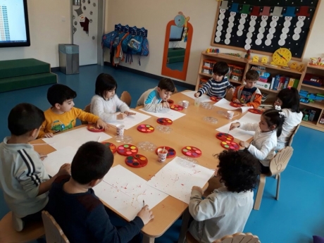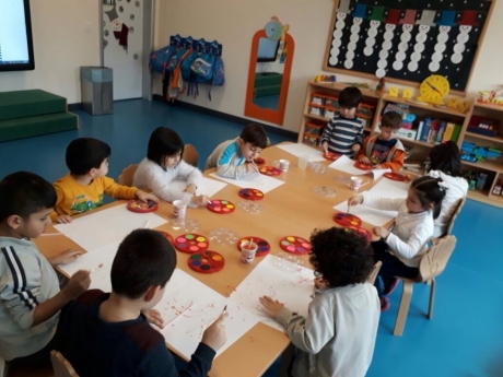 Ankara - İncek Okyanus Koleji, Okul Öncesi | Fotoğraf | İncek Okyanus Okul Öncesi İnciler Grubu El göz Koordinasyonu geliştiren Üfleme çalışması yaptılar.
