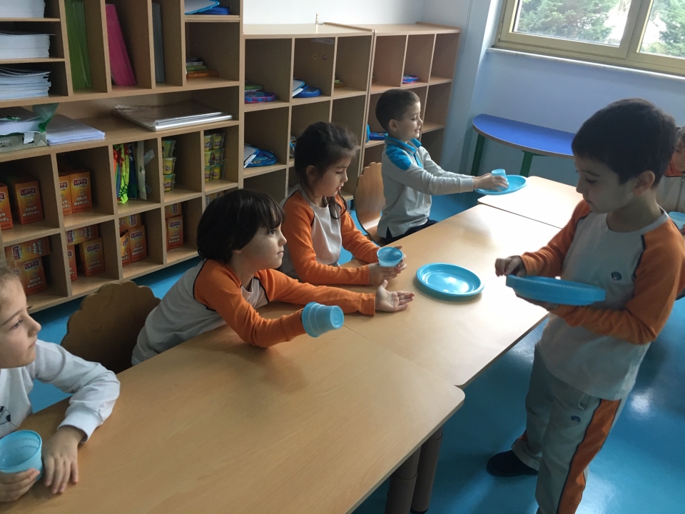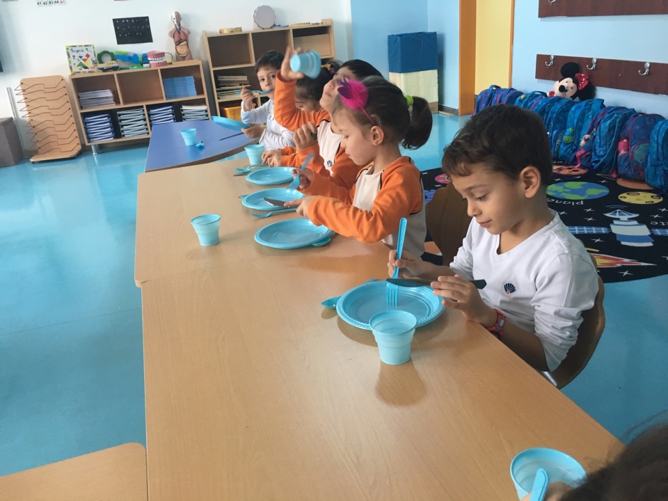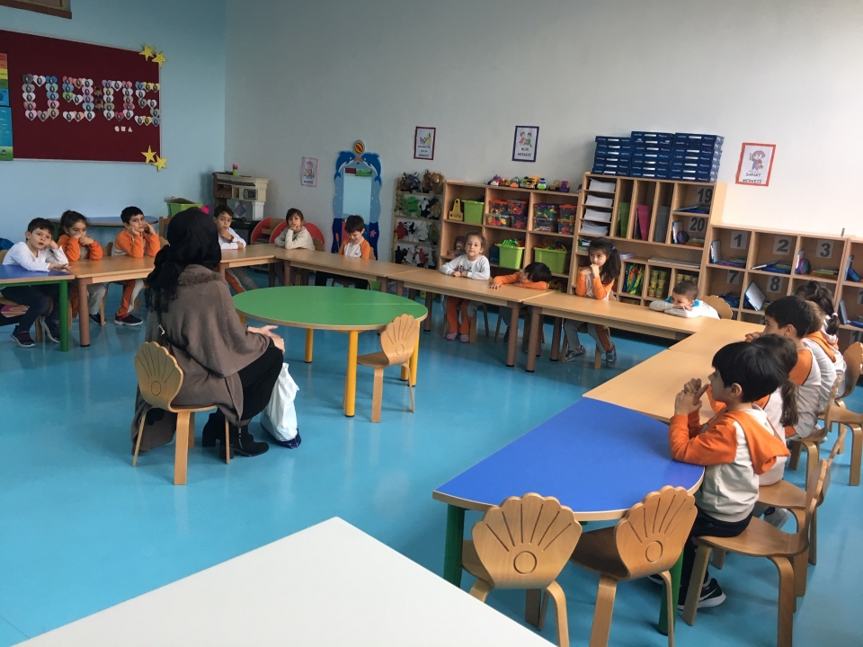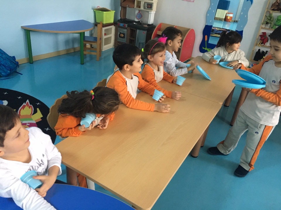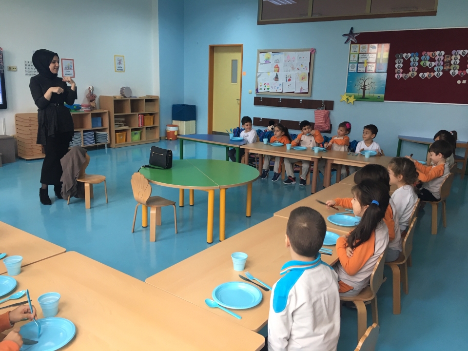 Deniz Yıldızı grubu öğrencileri aile katılım çalışmalarında bu hafta arkadaşları Fırat Aksu’nun annesi Cansu Hanımı sınıflarına konuk etti. Cansu Hanım önce her öğrenciyle tanışıp kendisini tanıttı. Yemek yeme kuralları, sofra adabı ile ilgili sohbet ettik. Yemek yerken nelere dikkat etmeliyiz? sorusunun cevabını izlediğimiz videoyla pekiştirdik. Daha sonra plastik tabak, çatal, kaşık ve bıçak kullanarak doğru yemek yemeyi deneyimledik. Cansu Hanım’a bize ayırdığı vakit ve emekleri için çok teşekkür ediyoruz.