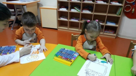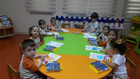 Güneşli Okyanus Koleji Okul Öncesi Çiçekler Grubu Resim Yapıyor