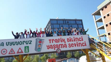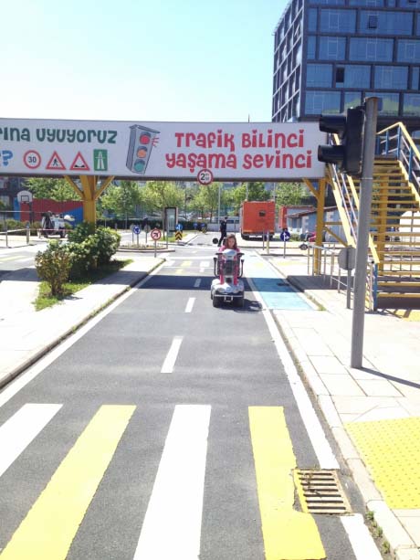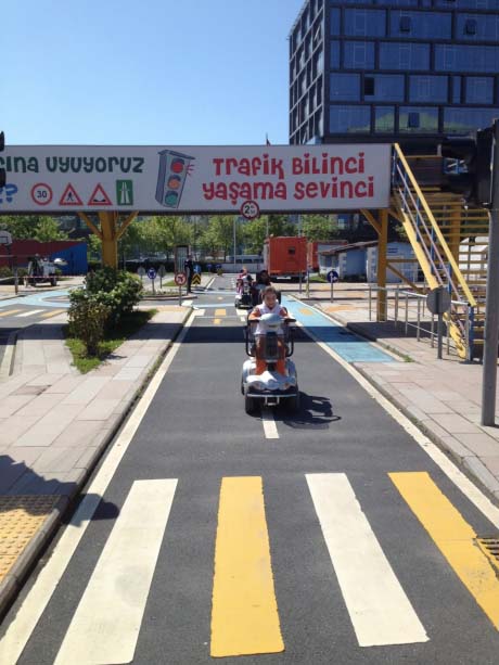 Daha sonra trafik parkını gezen öğrenciler, trafik kurallarını öğrenirken aynı zamanda hazırlanmış olan trafik parkurunda sürüş yaparak, öğrendikleri bilgileri kullanma fırsatı buldular.