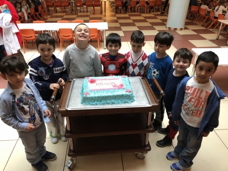 Öğrencilerimiz okulda geçirdikleri günleri sayarak ve işaretleyerek 100 günü tamamladı. Okulumuzun girişinden başlayarak 1’den 100’e kadar ayak izlerini takip ettiler ve parti alanında konfeti patlatarak müzik eşliğinde dans ettiler.100.Gün partisinde;100 rakamı maskesi süsleme, nesnelerle gruplama, basit toplama çıkarma çalışmaları, ritmik sayma ve “100 yaşında olsaydın ne olurdu?” sorusu ile beyin fırtınası yaptılar. Yemekhaneye girerken sepetten çektikleri rakamlar ile sandalyede eşleşen rakamı bularak yerlerini buldular ve Öğrencilerimiz için hazırlanan 100. Gün pastasını da hep birlikte afiyetle yediler.
