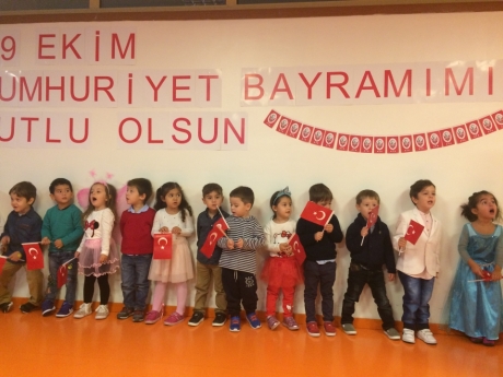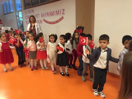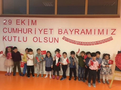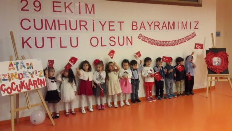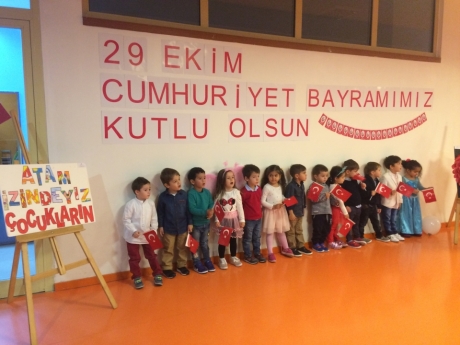 Törenimiz, öğrenci ve öğretmenlerimizin saygı duruşu ve ardından İstiklal Marşı’nın okunmasıyla başladı. C,D Grubu öğrencilerimiz şarkı ve şiirleri ile törenimize renk kattı. A ve B grubu öğrencilerimizin şiirlerini okumasının ardından Tüm öğrencilerimiz müzik öğretmenimizin eşliğinde Cumhuriyet şarkısını söylediler. A,B,C,D grubu öğrencilerimiz 10. Yıl Marşı eşliğinde yürüyerek 29 ekim cumhuriyet bayramını kutladılar