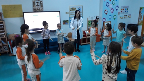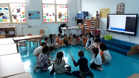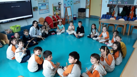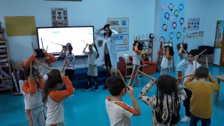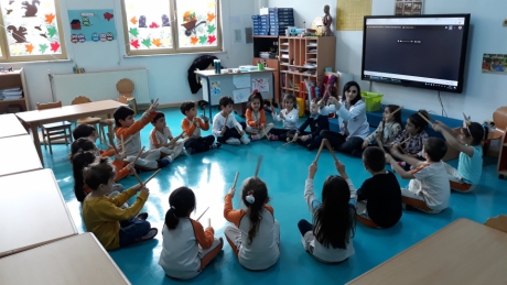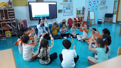 İstiridye gurubu öğrencileri “ormanda yürüyen tavşanlar” müziği eşliğinde bagetler ile drama ve ritim çalışması yaptılar. Müziğin ritmine uygun olarak bagetleri ile ritim tutan öğrencilerimiz,şarkıda geçen hikâyeyi ritme uygun olarak canlandırdılar. Bedenlerini müzik öğretiminde etkin bir şekilde kullanabilmelerini ve grup eşliğinde hareket edebilmelerini destekleyici ritim ve drama çalışmalarını keyifle gerçekleştirdiler.