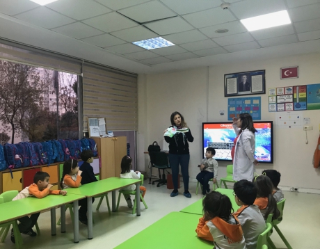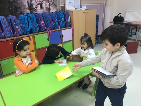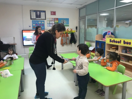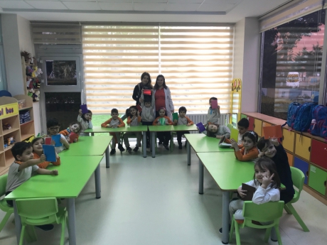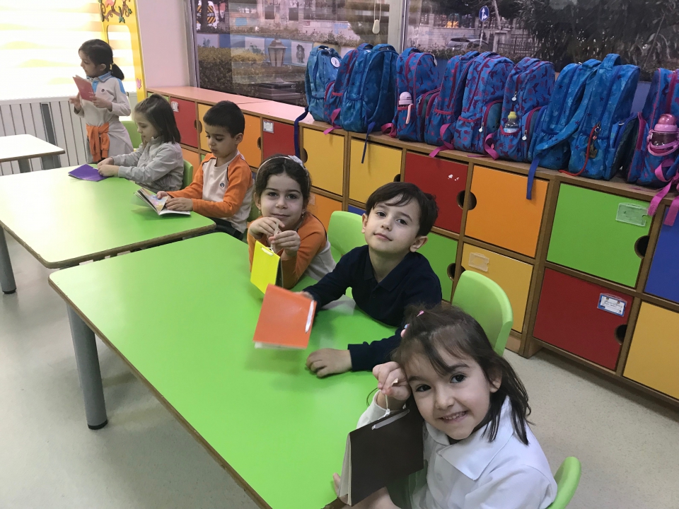 Gezegenler Grubu bu hafta aile katılımı etkinliğinde öğrencimiz Kayra Efe’nin annesi Özleyiş Hanım ile tanıştı. Özleyiş Hanım hazırladığı renkli kağıtları ve farklı masalları Kayra Efe ile beraber çocuklara dağıttı. Sayfa sıralamasını tamamlayıp kapakları hazırlayan çocuklar, Özleyiş Hanım’ın dağıtmış olduğu rafyalarla sayfaları birbirine bağlayarak hikaye kitabı yapımı etkinliğini tamamladı. Değerli katılımı için velimiz Özleyiş Hanım’a teşekkür ediyoruz…
