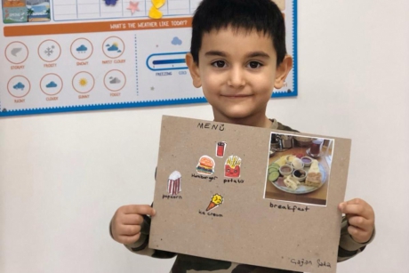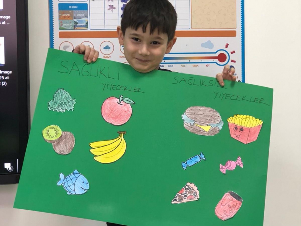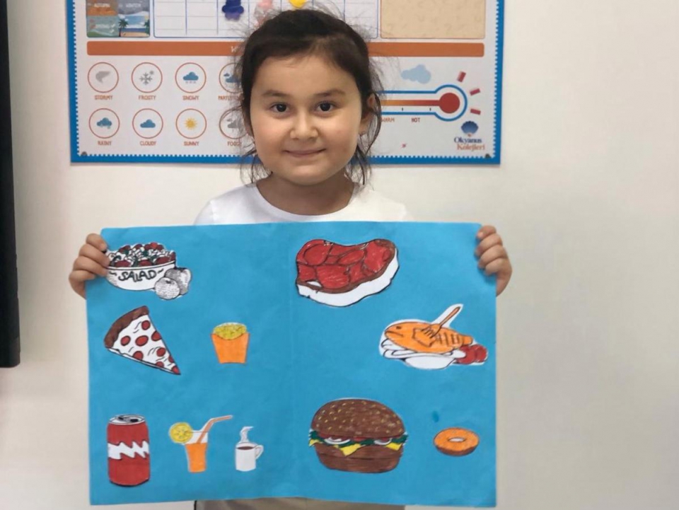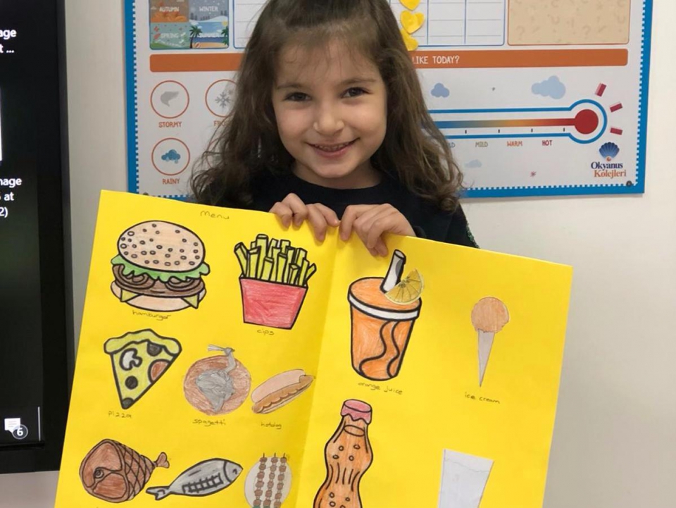 Güneş grubu öğrencileri bu hafta İngilizce Life Skills dersinde evde aileleri ile birlikte menüler hazırladılar ve sınıflarına sunum için getirdiler. Sağlıklı , sağlıksız ve sevdikleri yiyeceklerden bahsederek kendi restaurantlarını oluşturdular Canlandırmalar yaparak sipariş verdiler.
