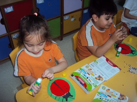 İlkbahar mevsim özelliklerini öğrenen öğrenciler, daha sonra ilkbahar mevsiminde sıkça gördüğümüz uğur böcekleri hakkında bilgiler edindiler ve uğur böceklerinin sadece kırmızı renkte olmadıklarını öğrendiler. Bu durum öğrencileri çok şaşırttı. İnce kas gelişimi sağlama adına yapılan çalışma ile kendi uğur böceklerini yapmanın heyecanını yaşadılar.