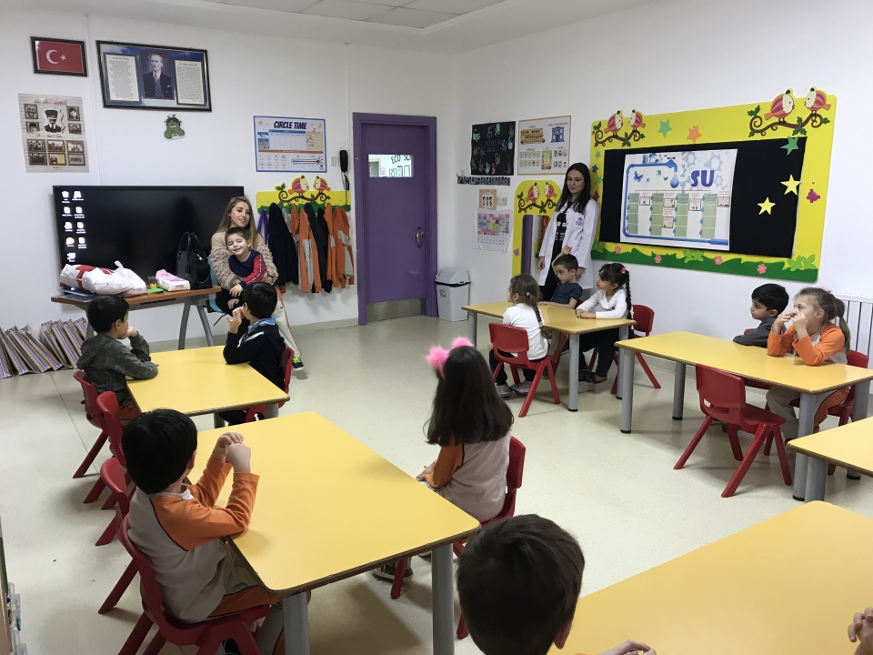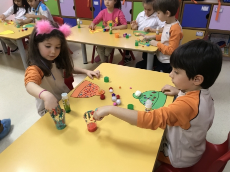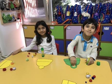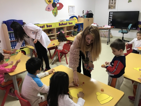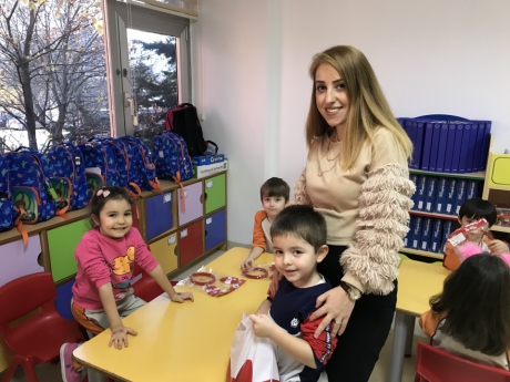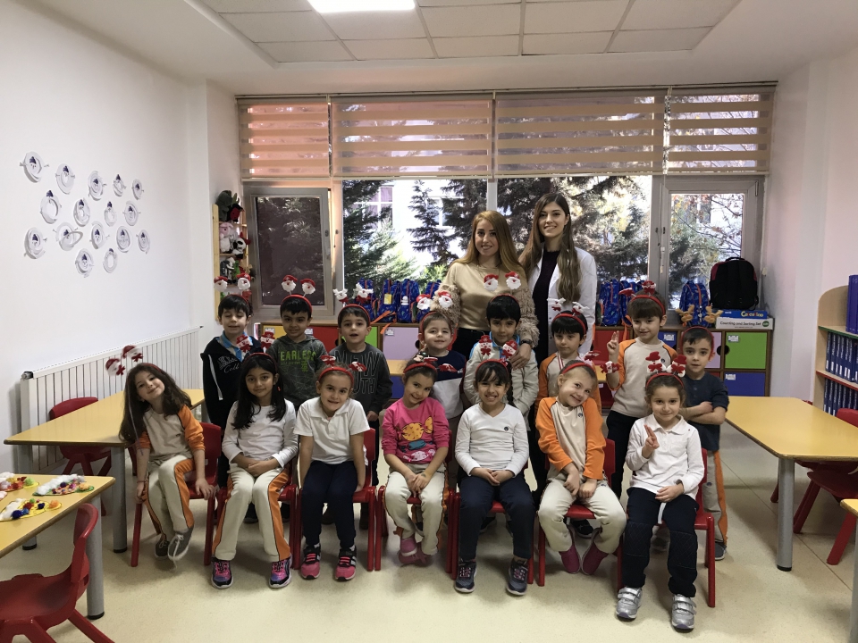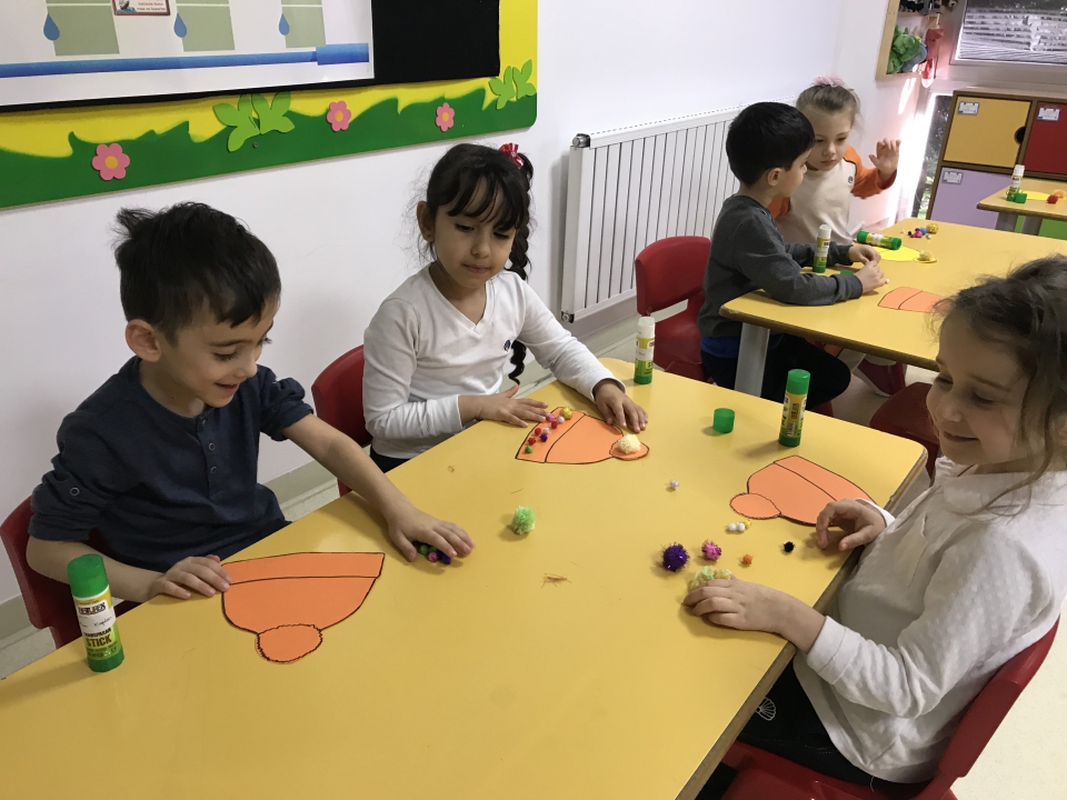 Kış mevsimi temalı etkinliğimiz için renkli şapka kalıpları, pamuk ve ponponlar getiren Nesrin Hanım; önce mevsimler, kış mevsimi, kış mevsiminde yapılan aktiviteler, kış mevsiminde giyilen kıyafetler hakkında Yıldızlar Grubu ile sohbet etti. Çeşitli sorular ve fikirlerden sonra Eymen ve Nesrin Hanım şapka kalıplarını dağıttıktan ve öğrencilere farklı renklerde parmak boyalar verdi. Ponponları ve pamukları yapıştıran öğrenciler; parmak boyalar ile şapkalarına desenler yaparak kendi şapkalarını tasarladılar. Yıldızlar Grubu; etkinliğin sonunda yeni yıl temalı taçlar dağıtan Nesrin Hanım ile hatıra fotoğrafı çektirerek etkinliğini tamamladı. Katılımlarından dolayı Nesrin Hanım’a teşekkür ederiz...