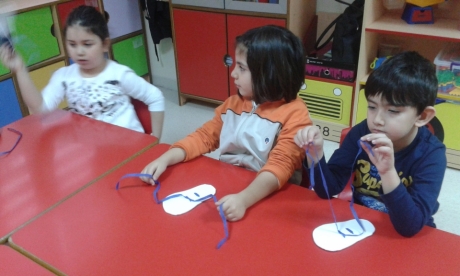 Bulutlar grubu bu hafta sınıflarında verilen maket ayakkabıların bağacıklarını kullanarak düğüm atmayı ve ayakkabı bağlamayı öğrenmeye başladılar.Bulutlar grubu zaman zaman zorlansalar da kendi ayakkabılarının bağcıklarını bağlamaya çalışmanın keyfini yaşadılar.