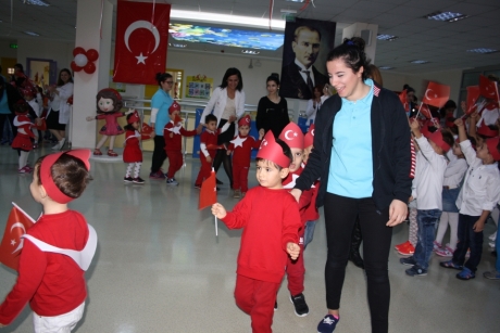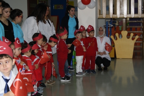 Törenimiz, öğrenci ve öğretmenlerimizin saygı duruşu ve ardından İstiklal Marşı’nın okunmasıyla başladı. Ardından C Grubu öğrencilerimiz şarkıları ile törenimize renk kattı. A ve B grubu öğrencilerimizin şiirlerini okumasının ardından D grubu ve tüm öğrencilerimizin 10. Yıl Marşı eşliğinde yürüyüşü ile törenimiz sona erdi. Törenimize katılan ve emeği geçen bütün öğrenci ve öğretmenlerimize teşekkür ederiz