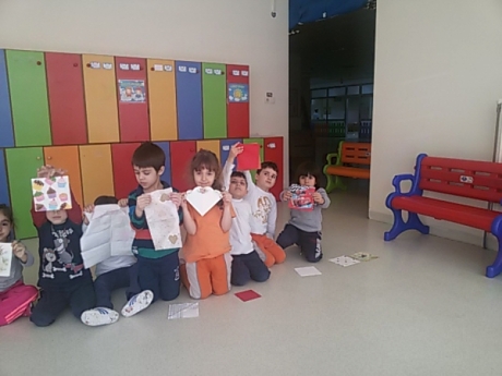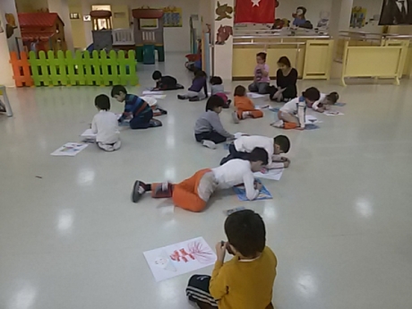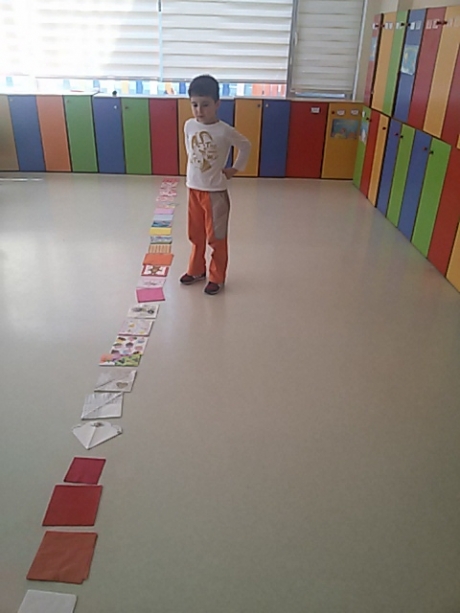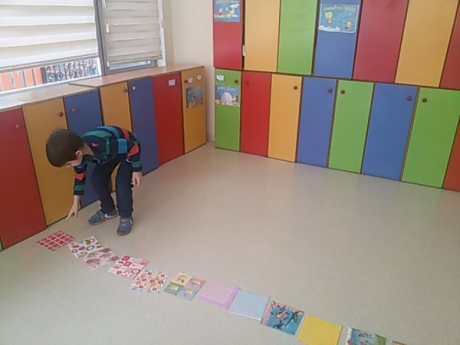 Yıldızlar sınıfı öğrencileri matematik etkinliğinde, önceden biriktirdikleri peçetelerin desenlerini incelediler. Tüm peçete çeşitlerini sıraladılar. Öğretmenin verdiği yönergeye göre, baştan ve sondan söylenen sayıdaki peçeteyi buldular. Sıralama ve eşleştirme çalışmalarına katıldılar. Peçeteler ile “Yarısını tamamlama” adlı yaratıcı çalışmalarını sonlandırdılar.