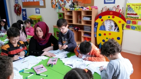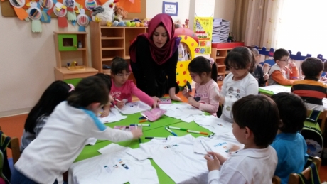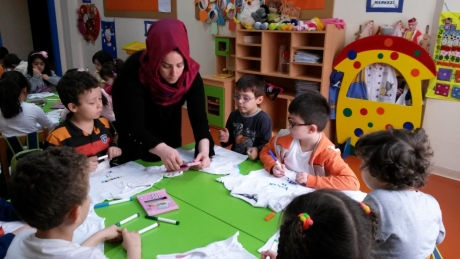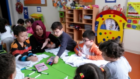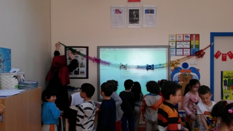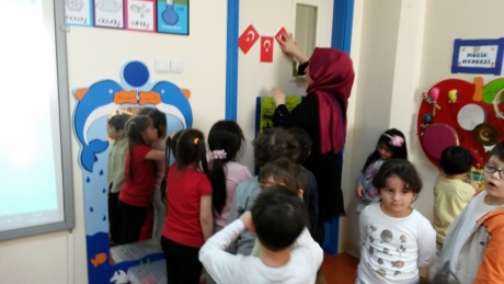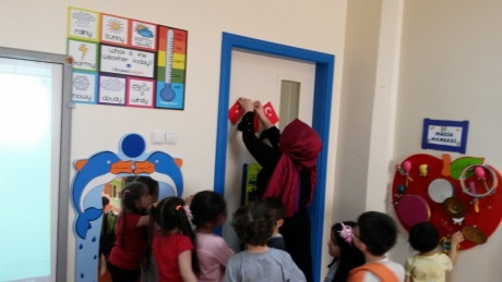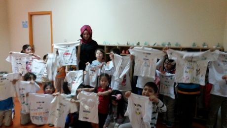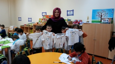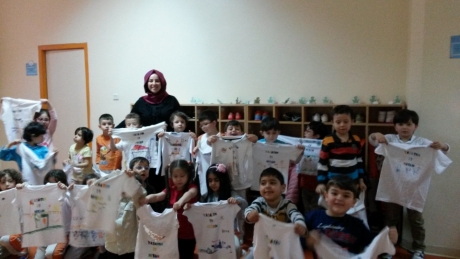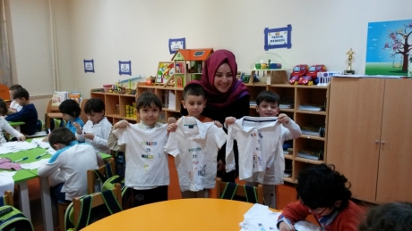 21.04.15 Salı günü Yıldızlar sınıfı olarak öğretmenimizin önceden 23 Nisan yazısı yazdığı t-shirtlerimizi önce boyadık, boş kalan kısma ise konumuz ile ilgili resim yaptık. 23 Nisan Çocuk Bayramı yaklaştığı için sınıfımızı süsledik, şarkılar söyledik.