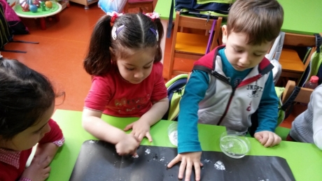 21.04.2015 tarihinde Rüzgarlar sınıfı olarak öğretmenimiz sınıfa parmak izi deneyini yapmak için gerekli olan malzemeleri getirdi. İlk olarak öğrenciler işaret parmaklarını suya sonra pudraya ardından ise siyah kartona basarak her öğrencinin farklı parmak çizgileri kartona çıktı. Öğrenciler parmaklarındaki çizgileri ve farklılıklarını dikkatle gözlemlediler.