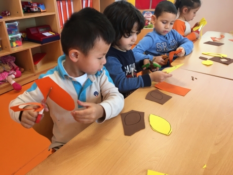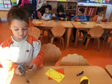 Antalya Konyaaltı Okyanus Koleji okul öncesi İnciler sınıfı sanat dersinde “Sonbahar Ağacı” etkinliği yaptı. Yaprakları keserek ağacı oluşturdular. Grup çalışması yaparken hem eğlendiler hem küçük kas gelişimlerini desteklediler.