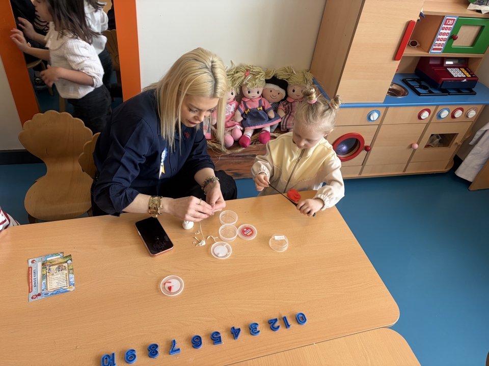 Okyanus Koleji Anaokulu’nda düzenlenen “Veli-Çocuk Atölyesi” etkinliği, çocuklar ve velileri bir araya getirerek birlikte öğrenme ve eğlenme fırsatı sundu. Oyun istasyonlarında gerçekleştirilen etkinliklerde aileler çocuklarıyla birlikte keyifli anlar yaşarken, güçlü bağlar kurma imkânı buldu.