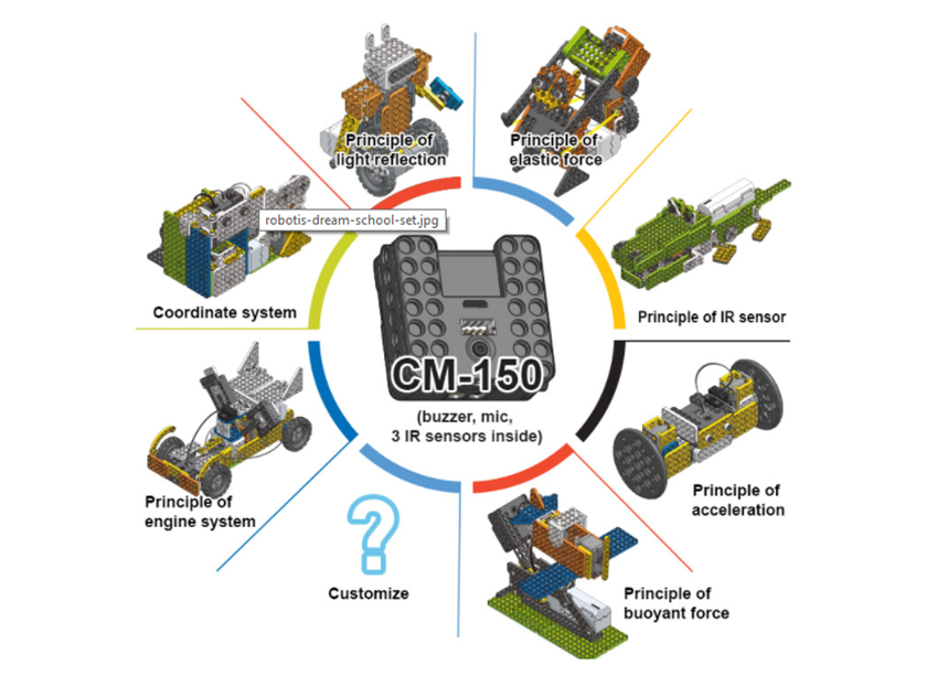 Kullandığımız Robotis Dream II School Set, öğrencilerin hem robotları fiziksel olarak inşa etmelerine hem de bu robotları yazılım aracılığıyla komutlandırmalarına imkân tanıyan kapsamlı bir STEM eğitim setidir. Bu set sayesinde öğrenciler:
